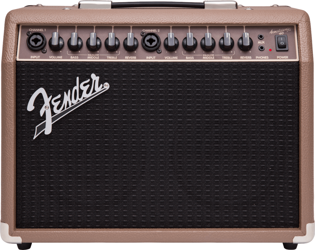 The Acoustasonic™ 40 amplifier offers portable amplification for acoustic-electric guitar and microphone. It's a simple, flexible "grab and go" solution for a variety of musical performance and basic public address applications, and it can also be used as an onstage monitor when combined with a PA system.