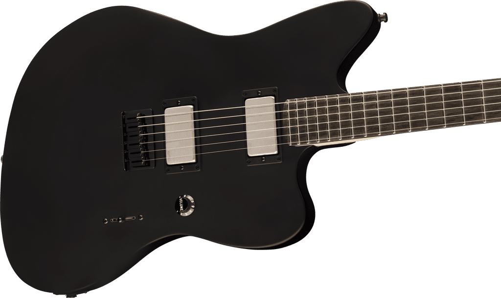 Stark, dark and menacing, the Jim Root Jazzmaster® guitar has got to be the most distinctively minimalist version of the instrument ever devised in the model's entire half-century history. At the behest of the towering Slipknot/Stone Sour guitarist, gone are the dual tone circuits and barrage of controls. Gone are the fret position markers and enormous chrome bridge. Gone, in fact, is pretty much everything typical of a Jazzmaster guitar, replaced only by fearsome EMG® 60 (neck) and 81 (bridge) humbucking pickups with brushed nickel covers, a single three-way switch, a single volume knob and a hardtail Stratocaster bridge.