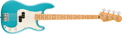 The Player II Precision Bass radiates timeless Fender charm, but under the hood, it's primed for today's players. Everything about the neck is designed for fast and fluid playability, from the Modern “C”-profile with silky satin urethane finish on the back to the comfy 9.5”-radius slab rosewood or maple fingerboard with smooth rolled edges and 20 medium jumbo frets. A classic alder body is available in both timeless Fender finishes and never-before-seen colors unearthed from the archives. Player Series Alnico V Split-Coil P bass® pickups offer sweet highs, musical mids and seismic lows that elevate any genre. An adjustable 4-saddle bridge, single-groove steel saddles and open-gear tuners ensure precise tuning stability for the flexibility to explore endless sonic possibilities.