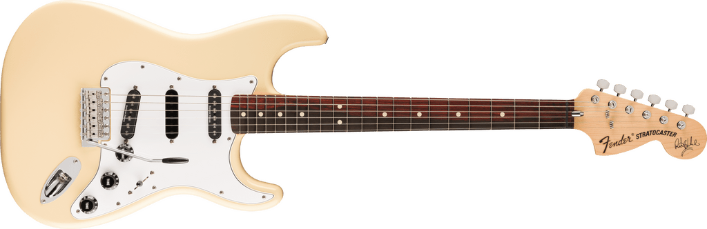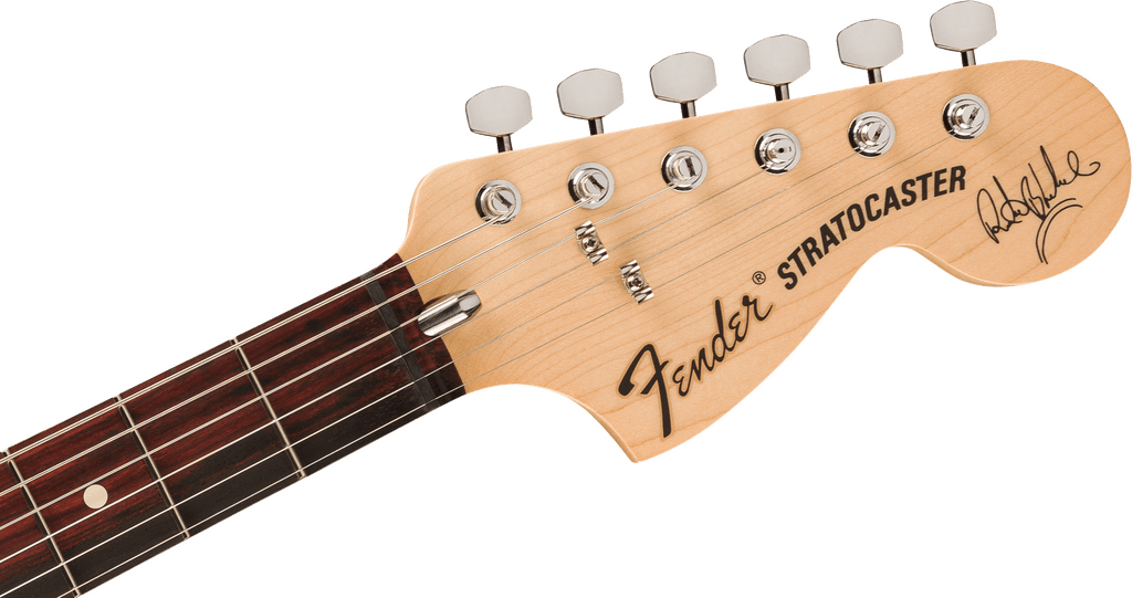 Legendary guitarist Ritchie Blackmore has been creating memorable guitar riffs for decades. His deft phrasing and unmistakable tone have helped make the phrase "guitar solo" a household term. Blackmore and Fender proudly present the Ritchie Blackmore Signature Stratocaster® guitar, based on his favorite '70s model and featuring a maple neck with a graduated scalloped rosewood fingerboard, Seymour Duncan® Quarter Pound Flat™ pickups and '70s-style "F" tuning machines. Deluxe gig bag included.
