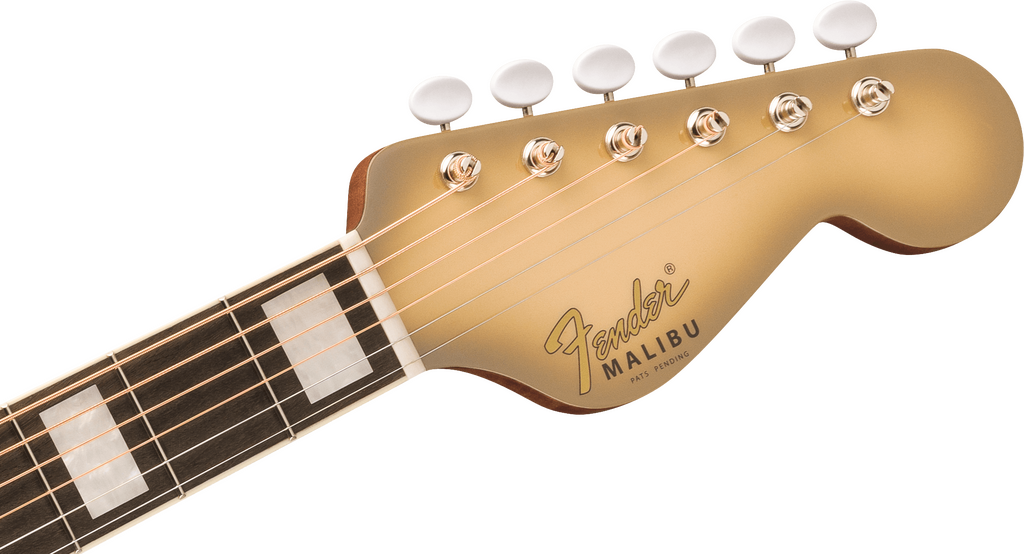 Engineered with an innovative Performance X™ bracing pattern, the approachable concert-sized body of the Fender California Vintage Malibu™ is lightly crafted with a solid Sitka spruce top and solid ovangkol back and sides to effortlessly produce a sweet, focused voice with exceptional nuance and balance. An ergonomic modern “V" profile was chosen for the the okoume neck along with a short 25“ scale length for warm tonal response, and a tilt-back 6-in-line headstock with a matching headcap for a distinctive look born from Fender’s electric guitar DNA. Other notable details include a bound ovangkol fingerboard with pearloid block inlays for a throwback look, vintage-style tuning machines for smooth, accurate tuning, and a bone nut and saddle for superior harmonic character. Designed for the performer, the onboard Fishman® Presys VT Plus preamp system features seamless soundhole-mounted controls that blend an undersaddle piezo and internal body transducer to allow faithful and reliable reproduction of the guitar’s natural sound when plugged into an amplifier or recording device. A vintage-style hardshell case is included.