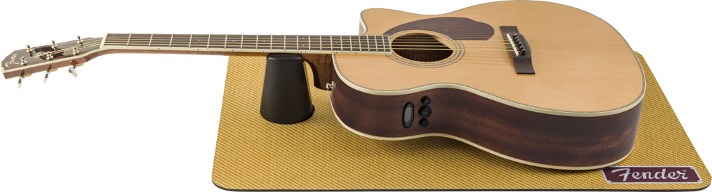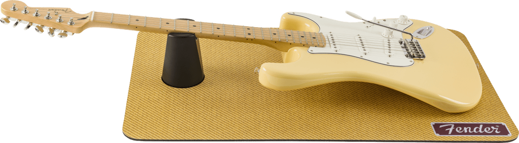Repair and restore your instrument like a professional. The Fender® Work Mat features a finish-safe neoprene pad and textured anti-slip bottom grip for ultimate durability. The included padded neck cradle holds your guitar at the proper angle for maintenance and adjustment. Crafted from durable EVA foam, the mat rolls up for quick and easy storage or on-the-go routine repairs. Elevate your work bench with the unmistakable look of Fender's iconic designs - tweed and amp grill cloth.