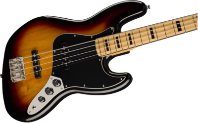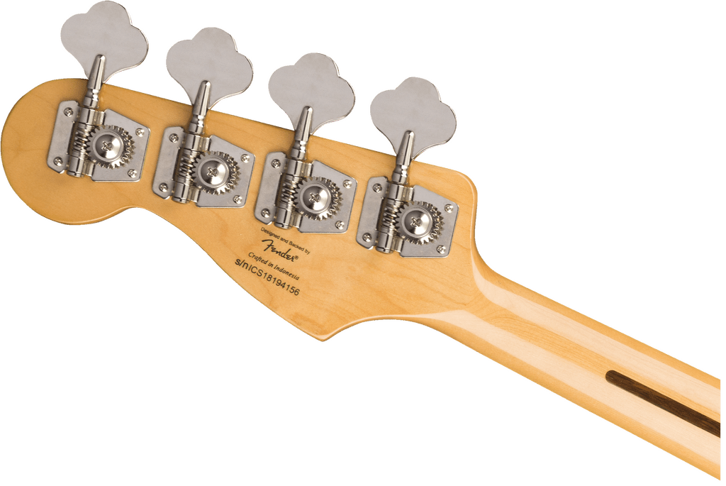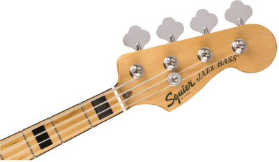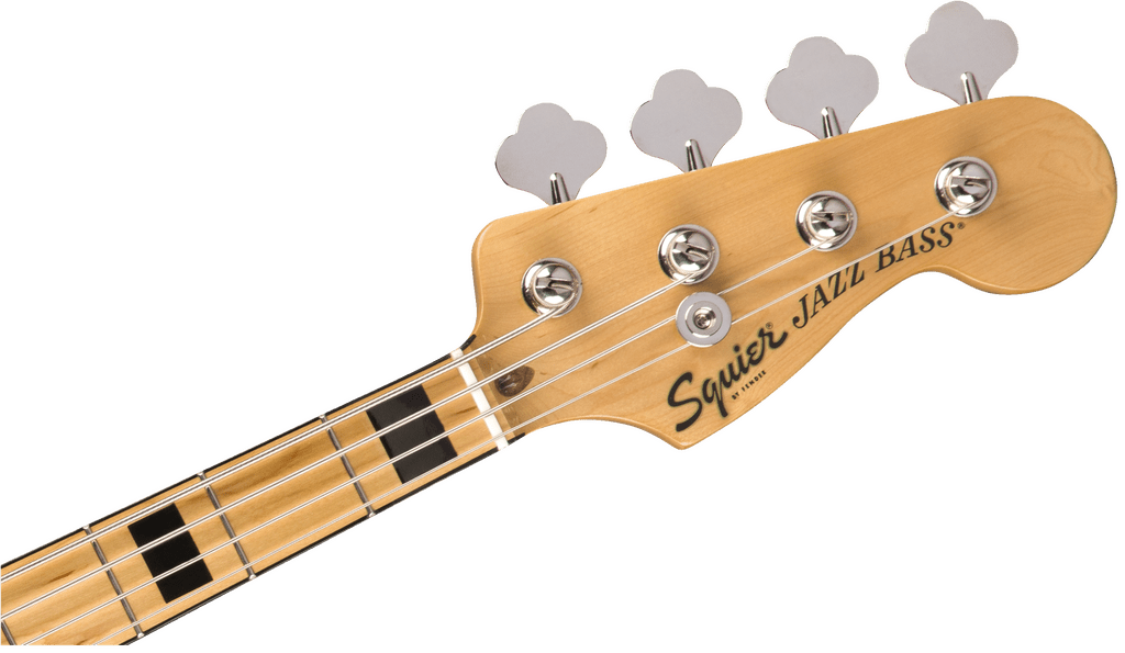 The Classic Vibe '70s Jazz Bass® is a nod to the 1970s evolution of the J Bass®, combining the luxurious playability that made it famous with the versatility and massive tone of its dual Fender-Designed alnico single-coil pickups. Player-friendly features include a slim, comfortable "C"-shaped neck profile with an easy-playing 9.5"-radius fingerboard and narrow-tall frets, as well as a vintage-style bridge with slotted barrel saddles for solid string stability. This throwback Squier model also features 1970s-inspired headstock markings, rich-looking nickel-plated hardware and a slick vintage-tint gloss neck finish for an old-school vibe.