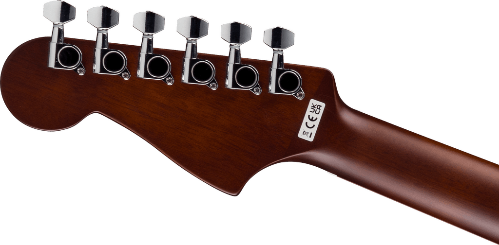 An instantly recognizable Fender design feature, the 6-in-line headstock creates a straight string pull from the nut for optimal tuning machine performance, and places all tuners in a linear location for easy access. The tilt-back design produces a consistent break angle on all strings for even response and string feel.