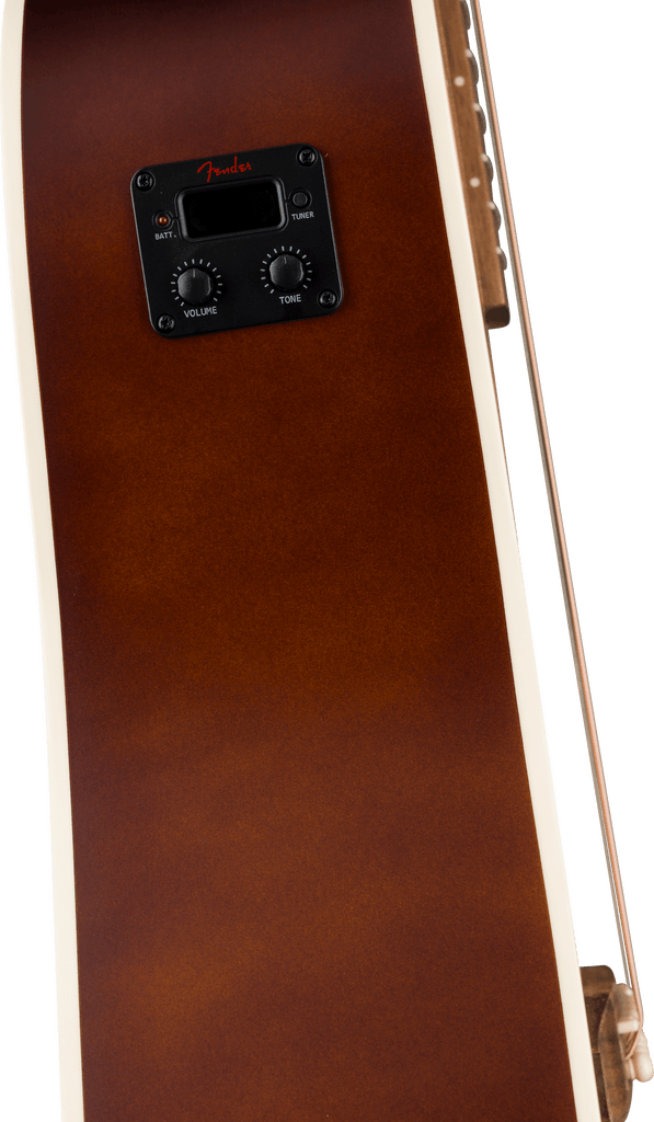 The California Debut™ Redondo® CE features resilient laminate construction with a spruce top and sapele back and sides for satisfying tone, while a 25 ½” scale neck with a slim “C”-shaped profile provides an effortless playing feel. The onboard Fender electronics provide high-quality output for live amplification, recording and effects, as well as a convenient onboard digital tuner. Other noteworthy details include an oiled walnut fingerboard and bridge, sealed gear tuning machines for smooth and accurate tuning action, and a rich satin finish.