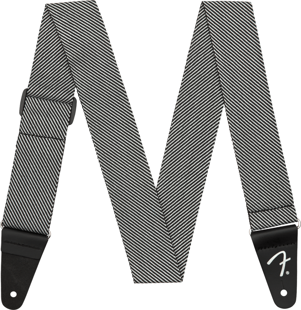 Wear your guitar in timeless Fender style with this modern take on the classic tweed strap. The combination of soft tweed, metal hardware and black leather ends featuring the classic "F" logo offer substantial, comfortable support with impeccable taste.
