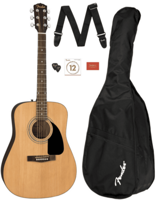 The new FA-115 pack offers great Fender sound and tremendous value to anyone looking to get their musical journey started on the right foot. This pack includes a rich-sounding FA-115 dreadnought acoustic guitar, along with a gig bag, picks, a strap, a spare pack of strings and a free 90-day subscription to Fender Play with access to hundreds of online lessons - everything you need to start playing instantly. The FA-115 is equipped with plenty of player-oriented features including a spruce top with "X"-bracing for full and resonant sound, smooth-playing 20-fret fingerboard and a tone-enhancing bridge with compensated saddle. Its quality construction and fine appointments make the FA-115 a guitar that sets itself apart from the pack and is sure to impress.