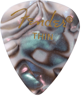 Celluloid is the premier pick material. Celluloid picks give the traditional feel, with a smooth striking surface and a warm, round musical tone. Often called the Fender® pick, the 351 shape is the pick most associated with Fender. A wider body and a rounded tip have made this pick a favorite with players of every style.