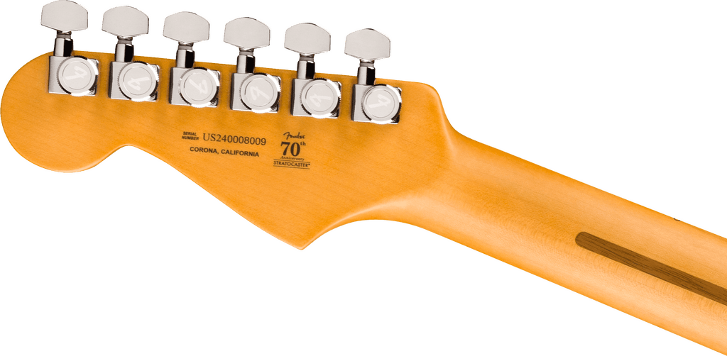 Under the hood, a trio of Ultra II Noiseless™ Vintage Strat® pickups deliver everything from sweet crystalline cleans to searing leads, all without a hint of hum. Our patented S-1™ switch cleverly unlocks additional pickup configurations for even more tonal variety. Additional road-ready features include 2-Point American Ultra synchronized tremolo with pop-in arm, polished stainless steel block saddles, cold rolled steel block, deluxe locking tuners, soft-touch knobs and 1-ply anodized aluminum pickguard.