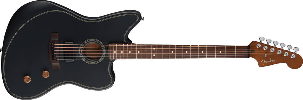 The dual personality of the Acoustasonic Standard Jazzmaster® equips players with a versatile spectrum of acoustic and electric tones in a single creative tool. With a braced solid Sitka spruce top, fully chambered body, inventive Fender and Fishman®-designed analog electronics with volume and blend control, and the familiar playing feel of a Fender icon, this Jazzmaster® truly sets the standard for the Acoustasonic experience.