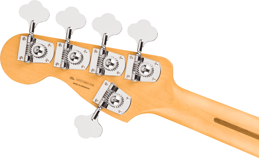 The Player II Modified Active Jazz Bass® V is a classic bass with the modern player in mind. Everything about the neck is designed for fast and fluid playability, from the Modern “C”-profile with silky satin urethane finish on the back to the comfy 9.5”-radius slab rosewood or 1-piece maple fingerboard with smooth rolled edges and 20 medium jumbo frets. The alder body provides classic Fender punch and is available in a variety of exciting new finishes. The Player II noiseless™ pickups deliver classic Jazz Bass® growl while eliminating unwanted noise while the all-new active preamp with passive tone control and EQ section gives players the perfect tool to dial in their favorite tones. The 5-saddle HiMass™ bridge, tapered-shaft tuners and TUSQ® nut all combine to keep tuning incredibly stable for even the most demanding performances.