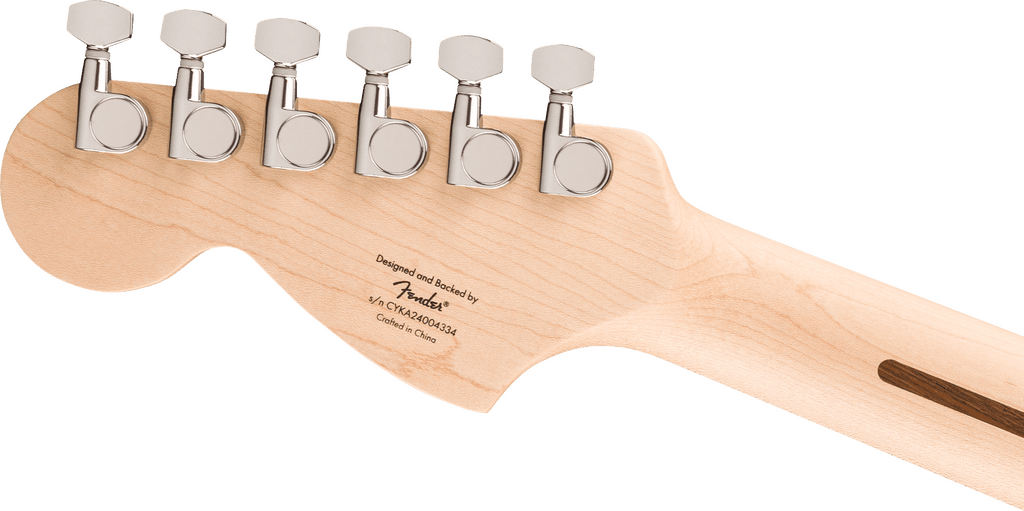 A superb gateway into the time-honored Fender® family, the Squier® Affinity Series® Stratocaster® Junior HSS delivers legendary design and quintessential tone for today’s aspiring guitar hero. This reduced-size Strat® features several player-friendly refinements such as a scaled-down lightweight body, a slim and comfortable “C”-shaped neck with a short 24“ scale length, a 2-point tremolo bridge for superior tremolo action and sealed die-cast tuning machines with split shafts for smooth, accurate tuning and easy restringing. Loaded with a Squier humbucking bridge pickup and single-coil neck and middle pickups for genre-defying sonic variety, this model is ready to accompany any player at any stage.