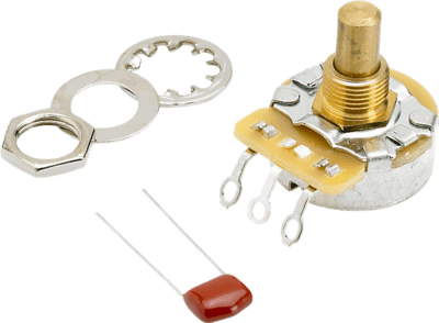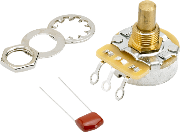 An integral part of the Delta Tone™ system used on Fender® American Series electric guitars, the "No-Load" potentiometer functions as a normal tone control from 1 to 9. At 10, however, the tone control is taken out of the circuit for increased output and overall tonal response. The 250K control is typically associated with single-coil pickups.