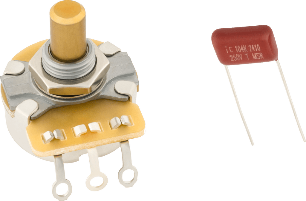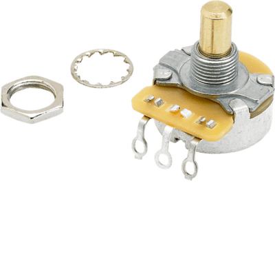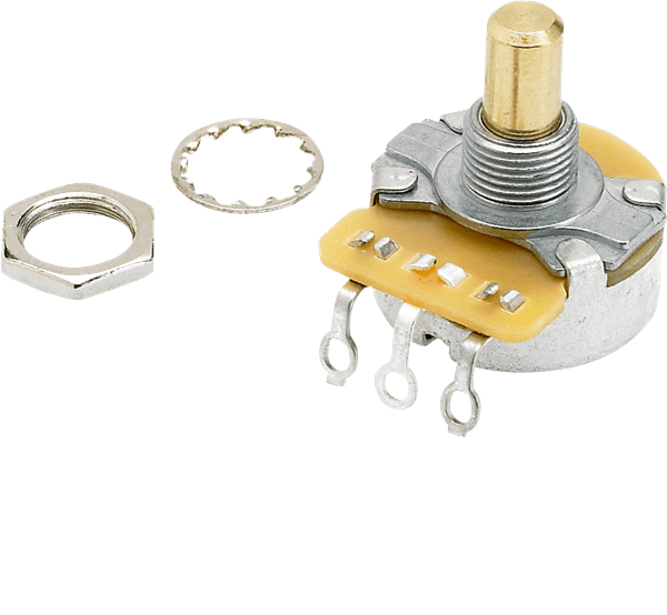 - Vintage-accurate 250K 3/8" solid shaft potentiometer for volume or tone control