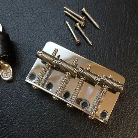 Genuine Fender American Vintage bass bridge. Complete assembly with old-style threaded saddles and mounting screws.